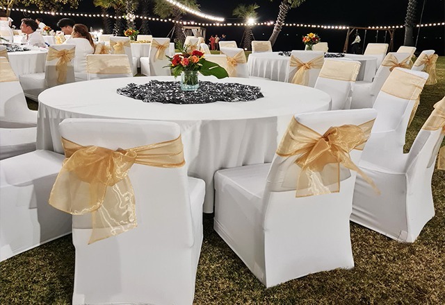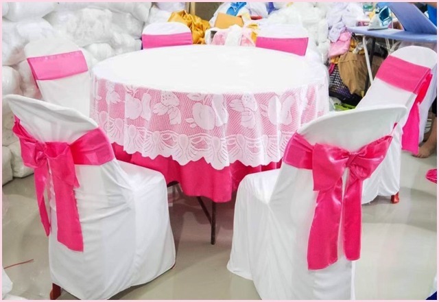แบบสำเร็จรูปและสั่งตัด จำหน่ายราคาส่งผ้าคลุมโต๊ะทุกขนาด ผ้าคลุมโต๊ะจีน พร้อมรับสกรีนผ้าคลุมเก้าอี้ บริการจัดส่งทั่วประเทศ เหมาะสำหรับผู้ประกอบธุรกิจจัดเลี้ยง จัดอีเว้นท์ ธุรกิจโต๊ะจีน ผู้ให้บริการสถานที่จัดเลี้ยงจัดประชุมสัมมนา สโมสร รวมทั้งสำนักงานต่างๆ ออฟฟิศ โรงเรียน โรงแรม และรีสอร์ท สนใจสั่งซื้อสั่งตัดผ้าคลุมเก้าอี้ ผ้าคลุมโต๊ะ ผ้าจับจีบระบาย ราคาส่ง ราคาโรงงาน